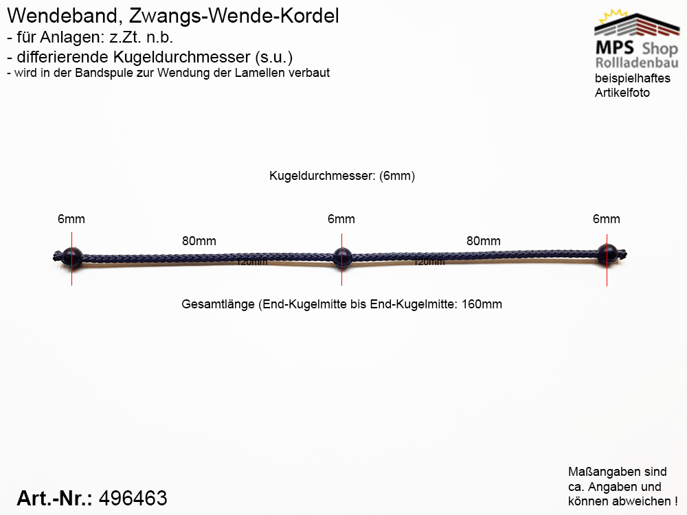 Startseite » Raffstore, Jalousien » TEX®.- Aufzugs.- Wende.- Spannbänder, Leiterkordeln » 115002102, Wendeband, Zwangs-Wende-Kordel, Kugelkette - 160mm, 3 Kugeln